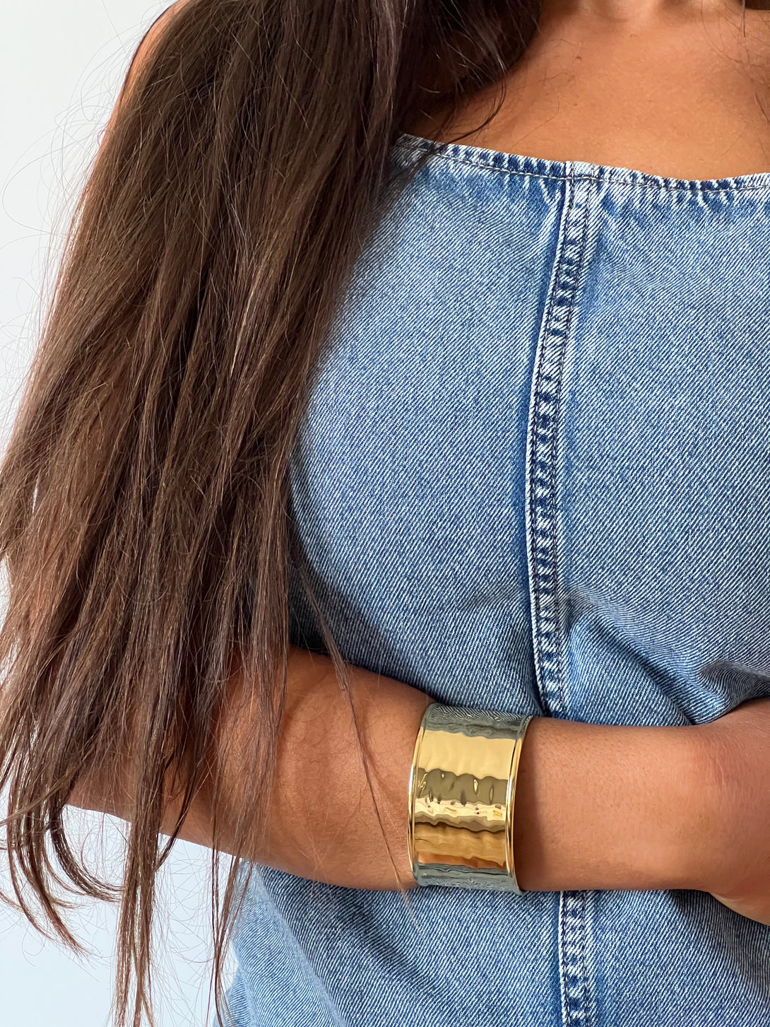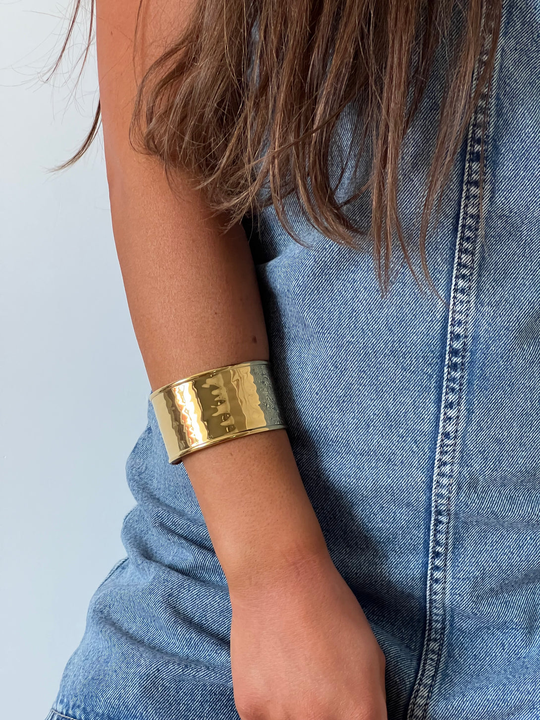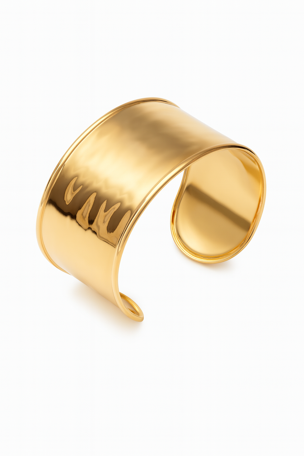 Bratara Cuff Gold este realizata din otel inoxidabil premium cu finisaj auriu lucios, un material hipoalergenic, rezistent la apa si la uzura zilnica, care nu se innegreste si nu rugineste. Designul sau lat si minimalist adauga un efect elegant si indraznet, transformand-o intr-o piesa statement potrivita atat pentru tinutele casual, cat si pentru cele sofisticate. Produsul beneficiaza de garantie