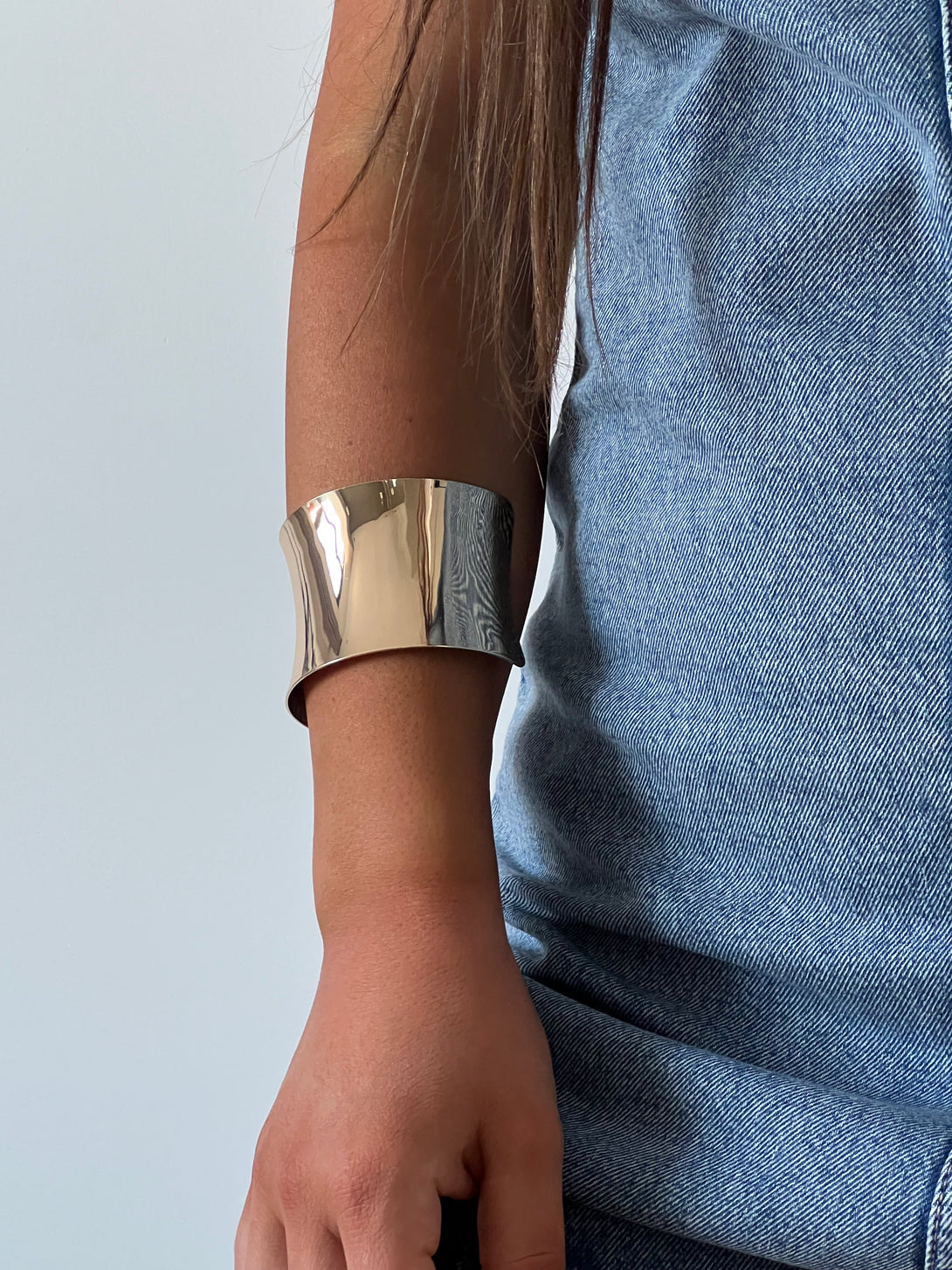 Bratara Gold Cone emana eleganta prin forma sa curata si suprafata aurie lucioasa, care reflecta lumina cu un efect spectaculos. Designul usor conic o face sa se aseze perfect pe incheietura, completand tinutele moderne sau elegante cu un accent rafinat.