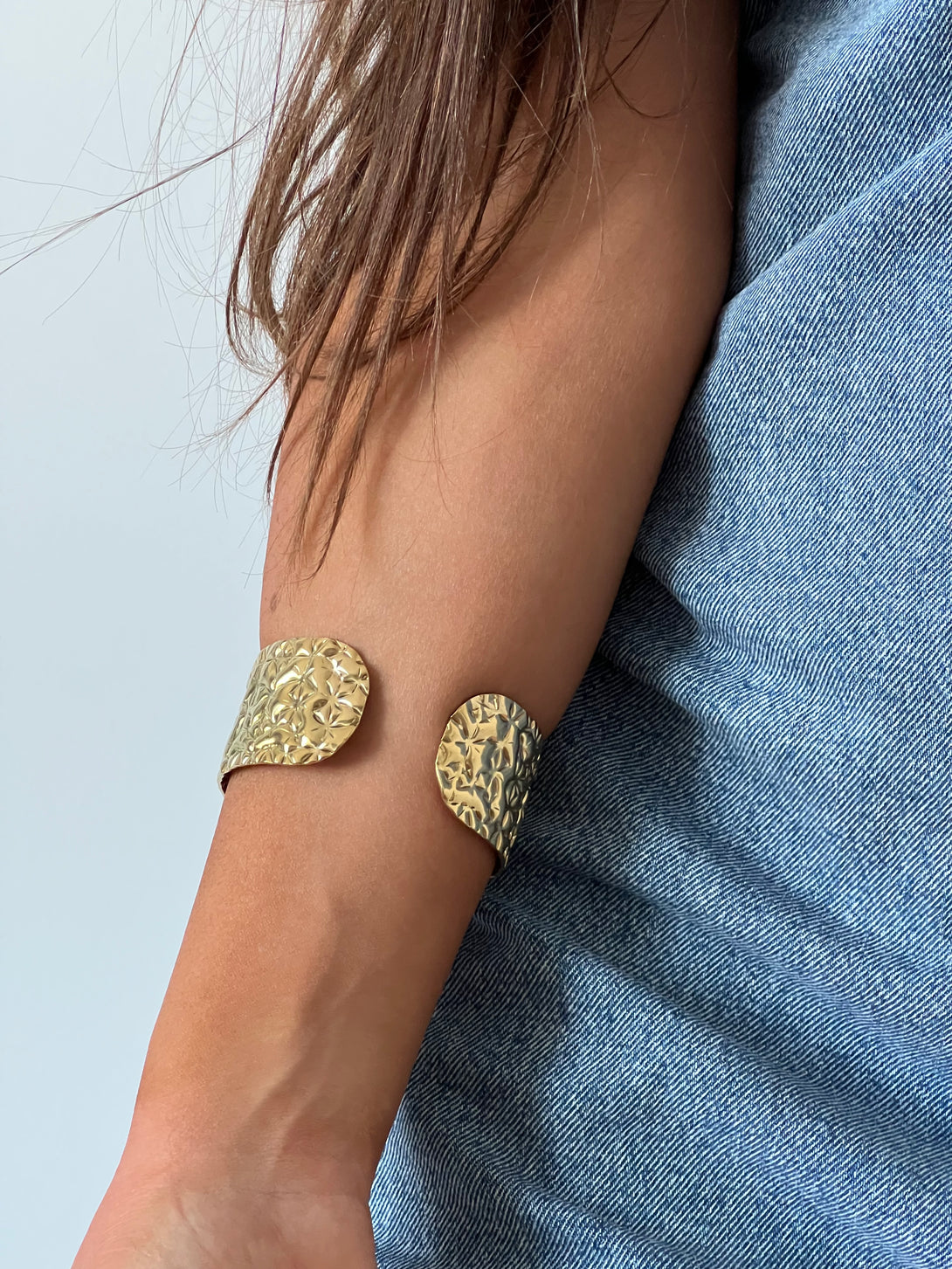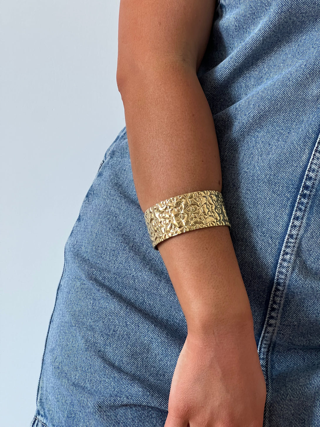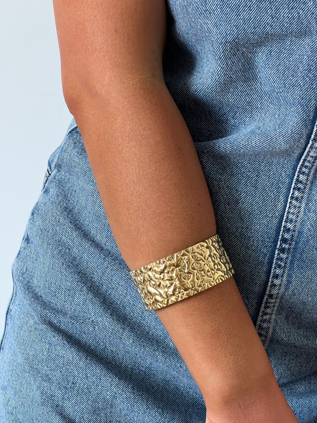 Bratara Gold Mosaic impresioneaza prin textura sa florala embosata si suprafata aurie intens lucioasa. Fabricata din otel inoxidabil, este rezistenta la apa si hipoalergenica, oferind confort la purtare si durabilitate in timp. Designul lat si detaliile geometrice inspirate din mozaicuri orientale transforma aceasta bratara intr-o piesa statement, ideala pentru tinute elegante sau casual-chic.