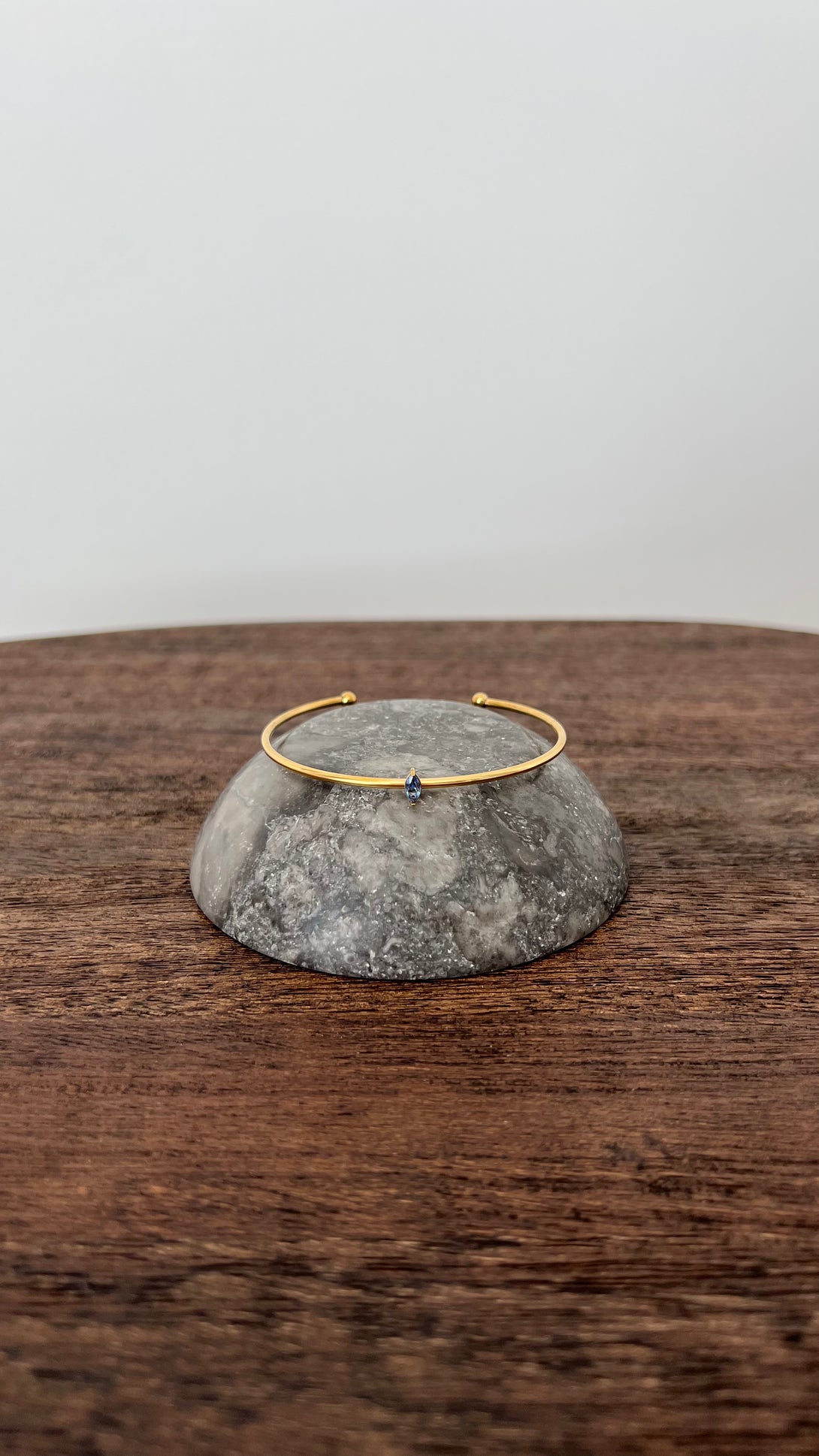Bratara fina cu finisaj auriu, pusa in valoare de o piatra albastra taiata marquise – un detaliu elegant si discret. Designul minimalist o face usor de purtat zi de zi, dar si de integrat in tinute sofisticate. Un accesoriu atemporal, ce adauga un strop de culoare si rafinament look-ului tau.