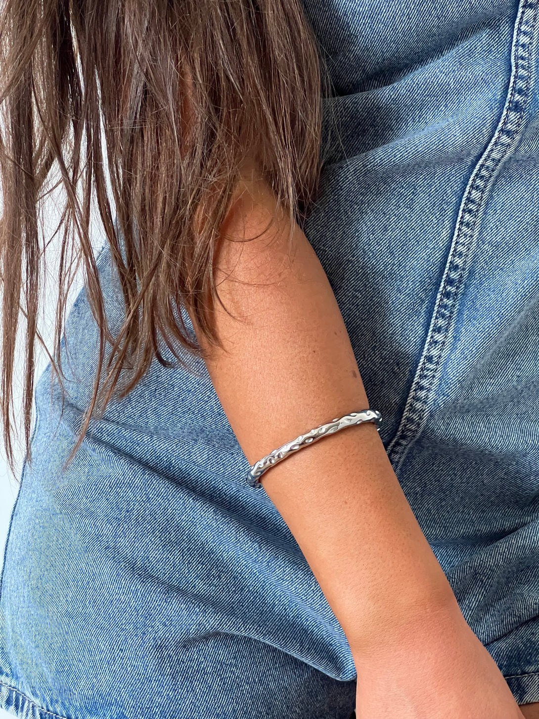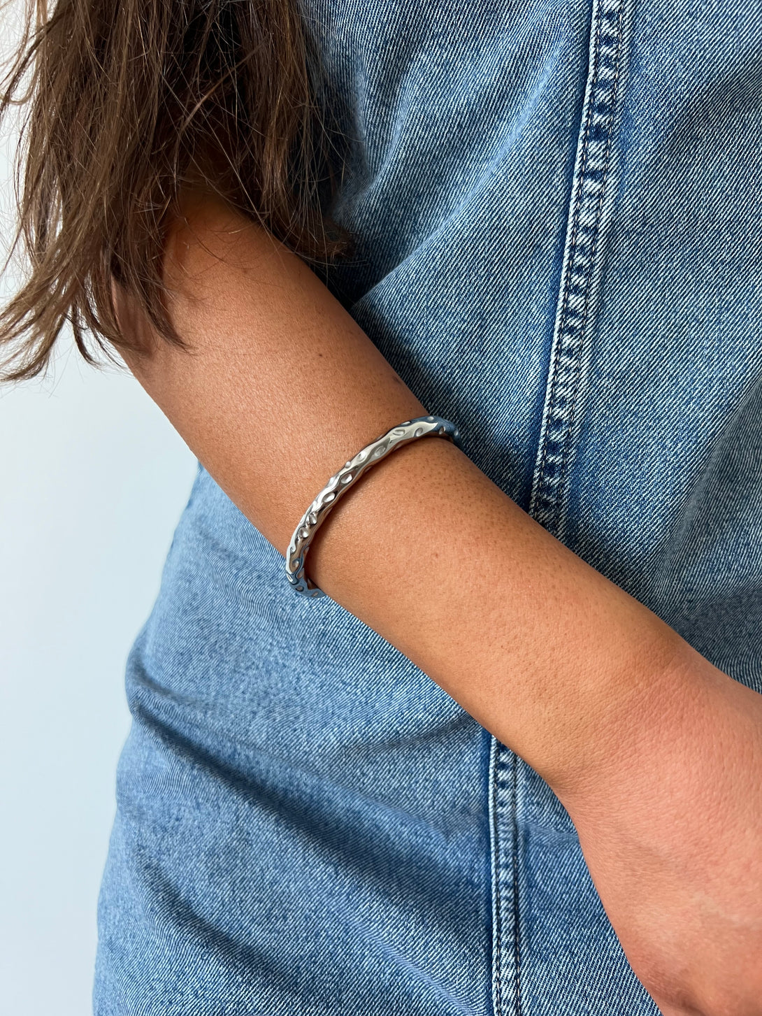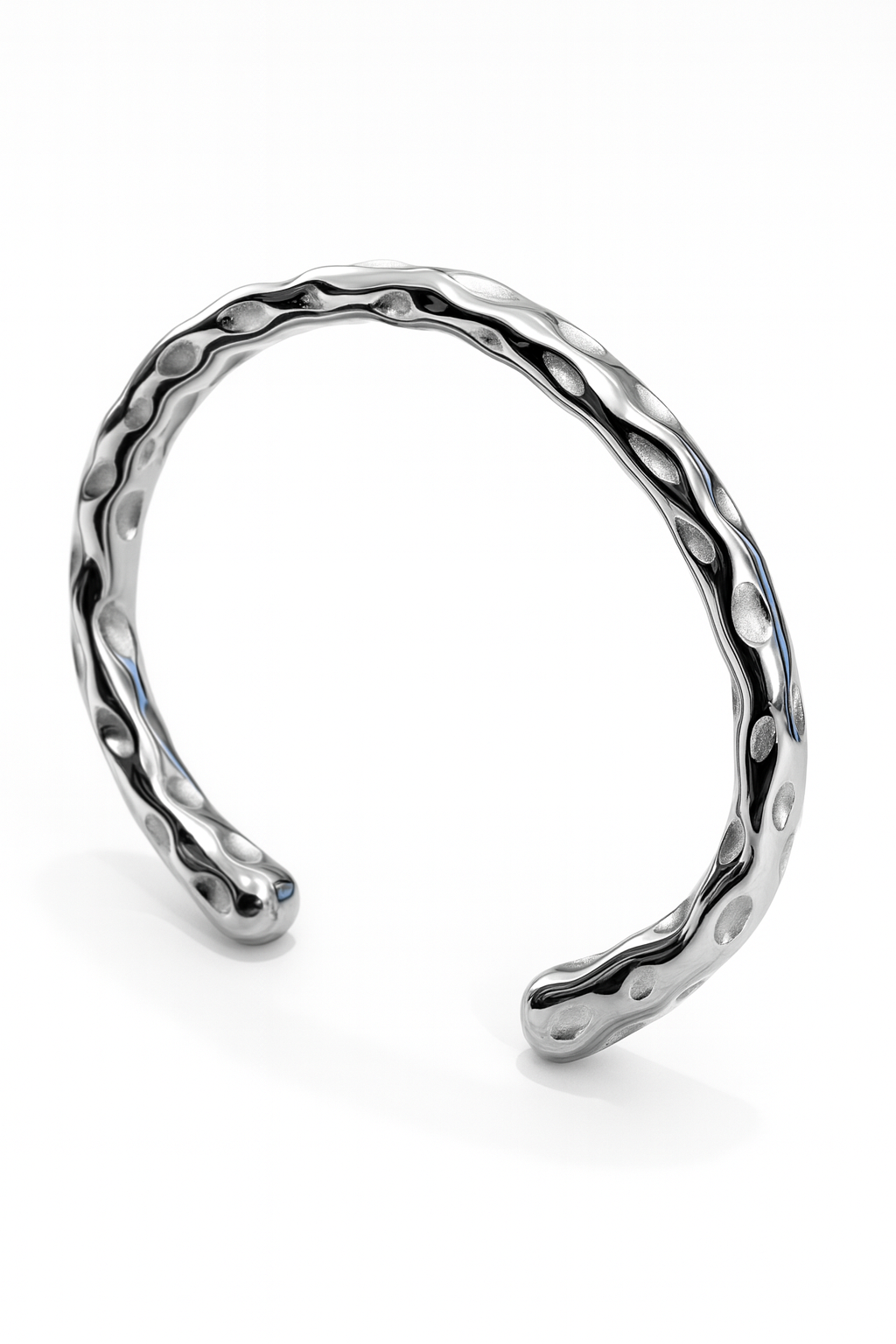 Bratara Raw Form Silver imbina textura organica si forma neregulata cu un finisaj argintiu rece si modern. Realizata din otel inoxidabil, aceasta bratara cuff rigida emana forta si rafinament minimalist. Este o piesa unisex, ideala pentru tinutele urbane, monocrome sau pentru a adauga contrast intr-un look elegant. Se poarta confortabil si adauga personalitate oricarui outfit.