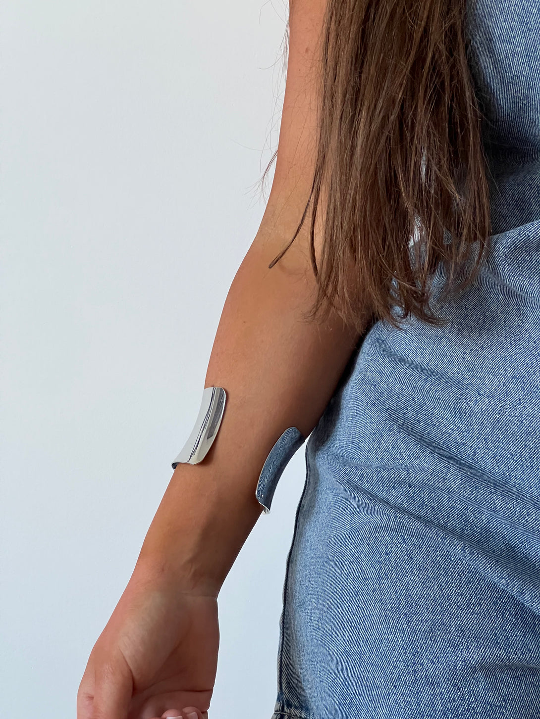 Bratara Silver Cone impresioneaza prin simplitatea sa rafinata. Designul usor conic si suprafata lucioasa, tip oglinda, ii confera un aer modern si elegant. Este o alegere versatila care completeaza perfect tinute minimaliste sau smart chic.