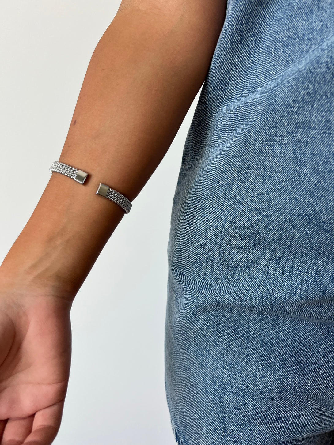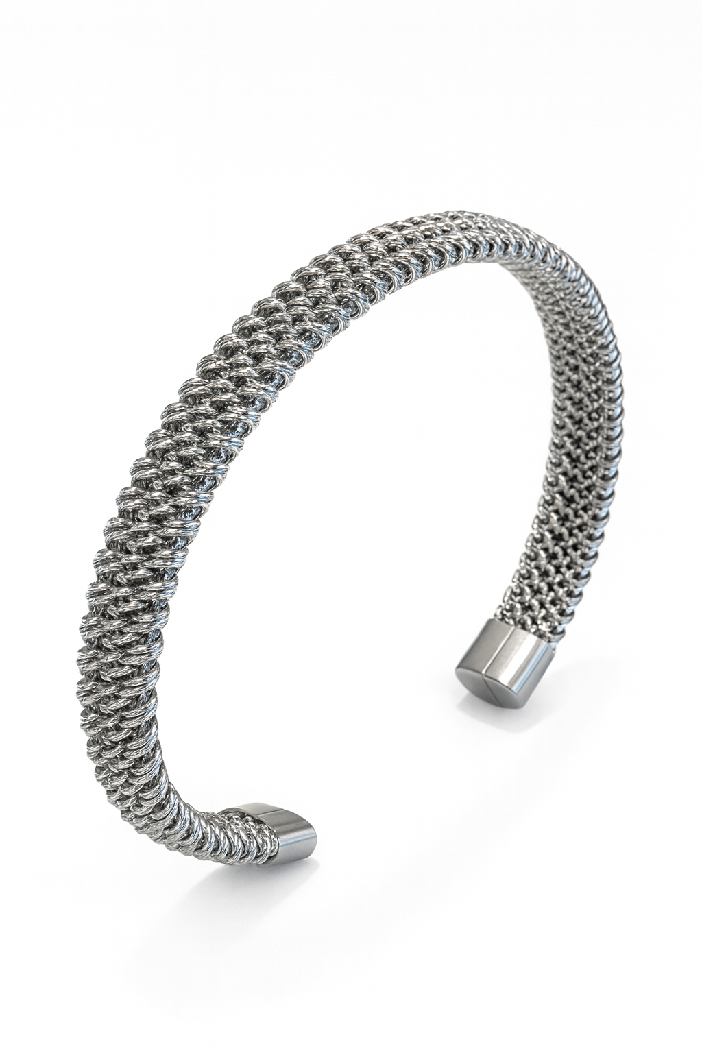 Bratara din otel inoxidabil cu textura spiralata de tip mesh, finisata in nuanta argintie. Are un design curbat elegant cu diametru de 6 cm si latime de 8 mm, fiind usor de purtat si asortat. Potrivita atat pentru un look minimalist de zi cu zi, cat si pentru un outfit mai sofisticat. Durabila si rezistenta la uzura.