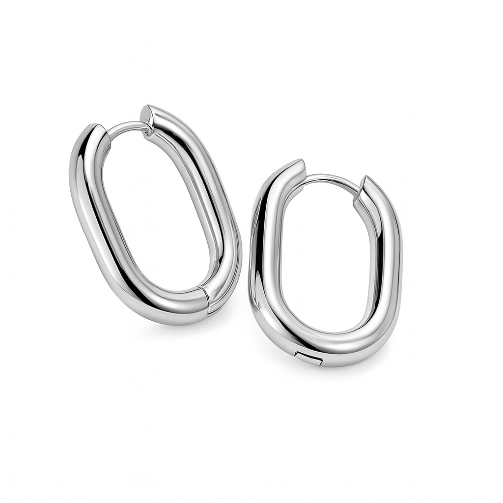 Cerceii Huggie Oval Silver Edition sunt creati din otel inoxidabil si au un finisaj lucios argintiu care le ofera un look minimalist si modern. Designul oval este versatil, perfect atat pentru purtarea zilnica, cat si pentru ocazii speciale. Inchiderea de tip huggie garanteaza confort si siguranta pe tot parcursul zilei.