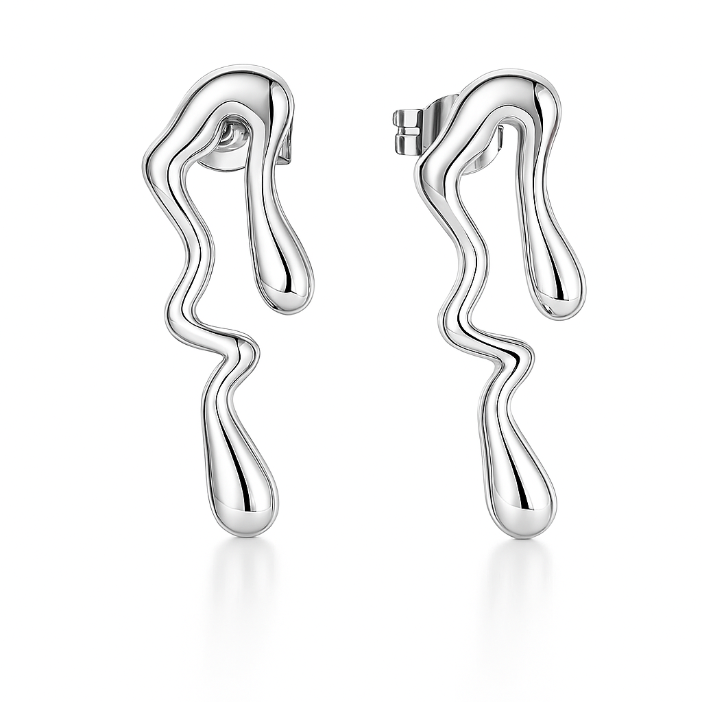 Cercei tip statement cu design fluid, inspirat de formele organice ale coralilor. Realizati din otel inoxidabil, acestia sunt hipoalergenici, rezistenti la apa si usori. Dimensiune: 3.84 cm lungime, 1.31 cm latime. Sistem de prindere tip surub.