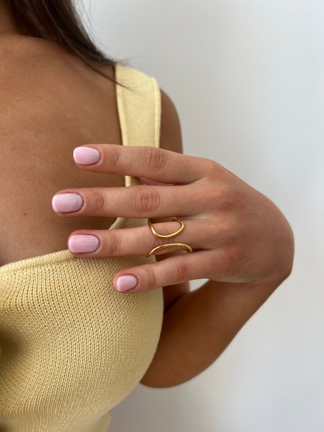 Un inel expresiv cu un design fluid si artistic, realizat din otel inoxidabil placat cu auriu. Formele curbate confera o nota moderna si organica, potrivita pentru un look sofisticat si neconventional. Cu dimensiuni de aproximativ 2.73 cm inaltime si 1.8 cm latime, inelul este reglabil pentru o potrivire confortabila pe orice deget.