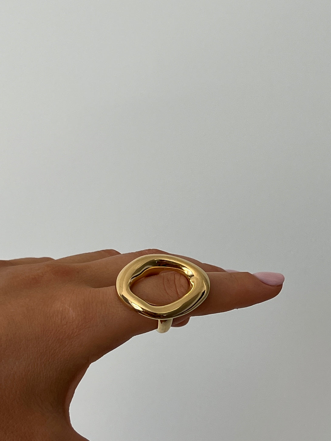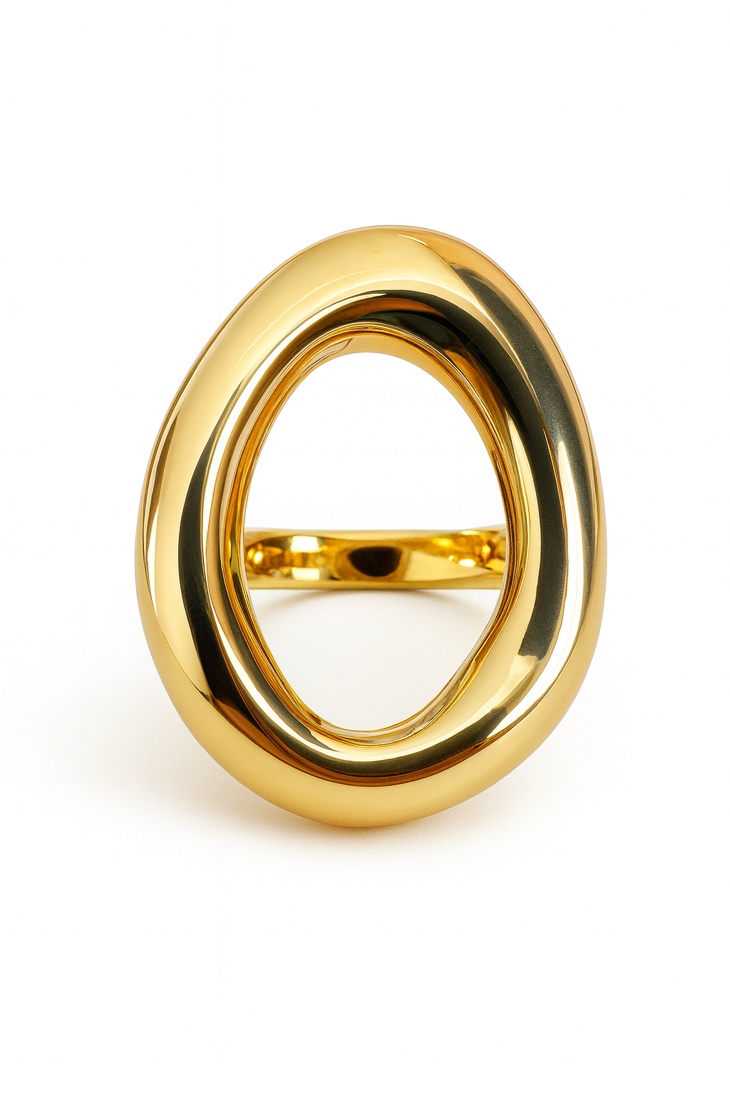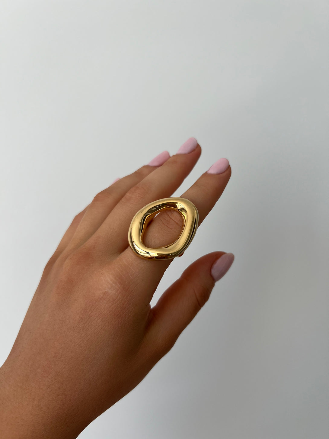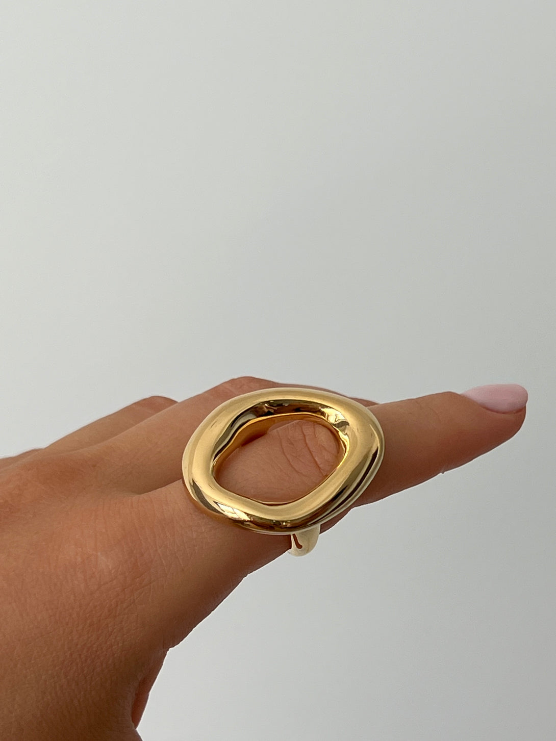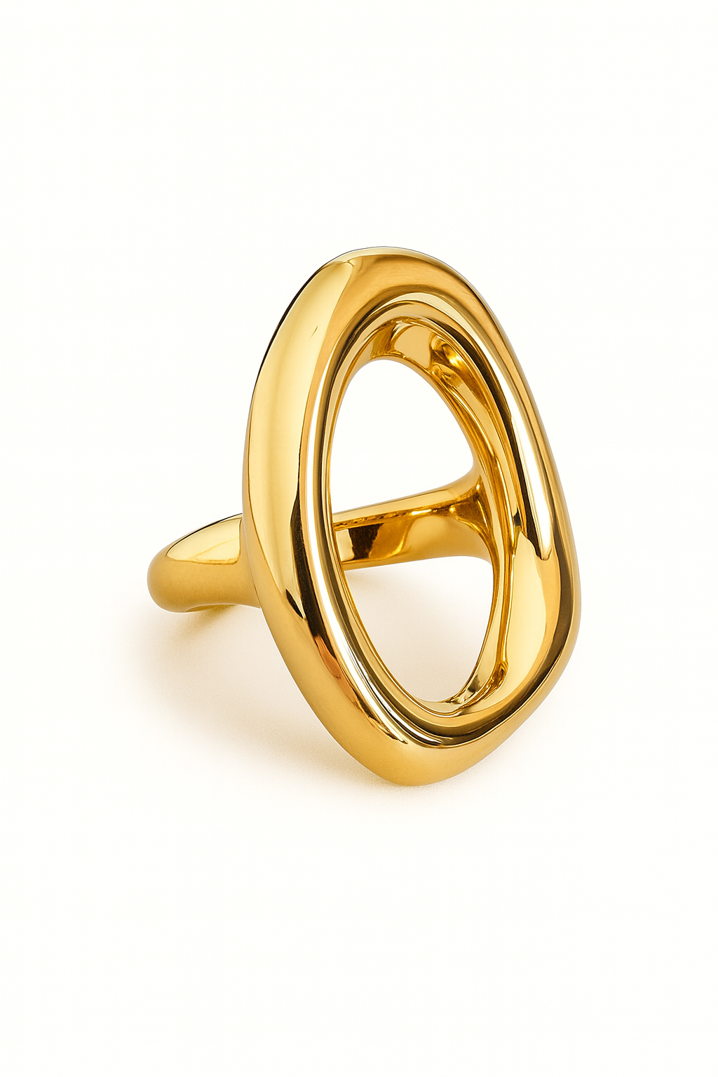 Inelul Liquid Bold impresioneaza prin designul sau fluid si dimensiunea(mare) statement. Cu un finisaj auriu lucios si o forma organica inedita, acest inel este realizat din otel titan durabil, fiind in acelasi timp lejer si confortabil. Perfect pentru tinute elegante sau minimaliste, adauga instant un accent modern si artistic oricarui look.