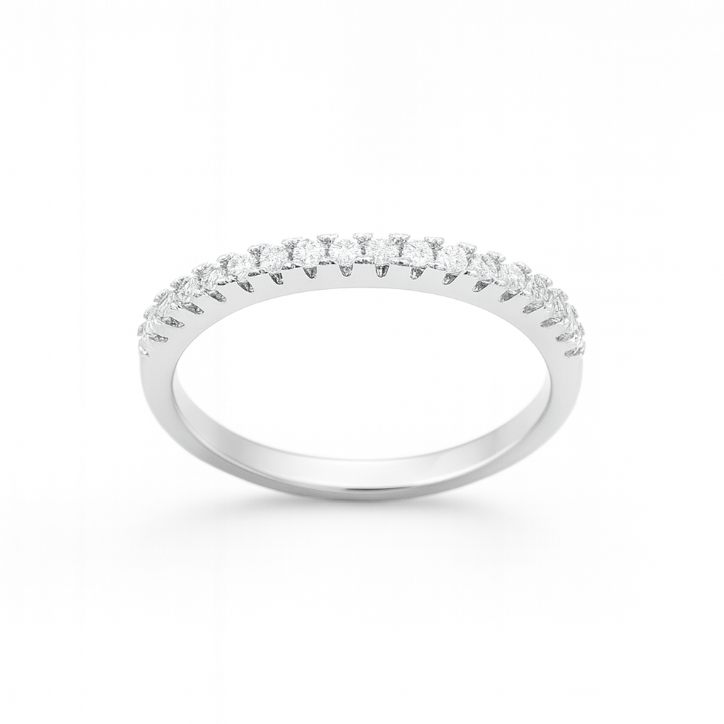 Sparkle Band este un inel subtire si delicat, decorat cu doua randuri de pietre tip zirconiu care ofera o stralucire subtila si eleganta. Perfect pentru purtare zilnica, pentru a fi combinat cu alte inele sau ca simbol personal al unui moment drag.