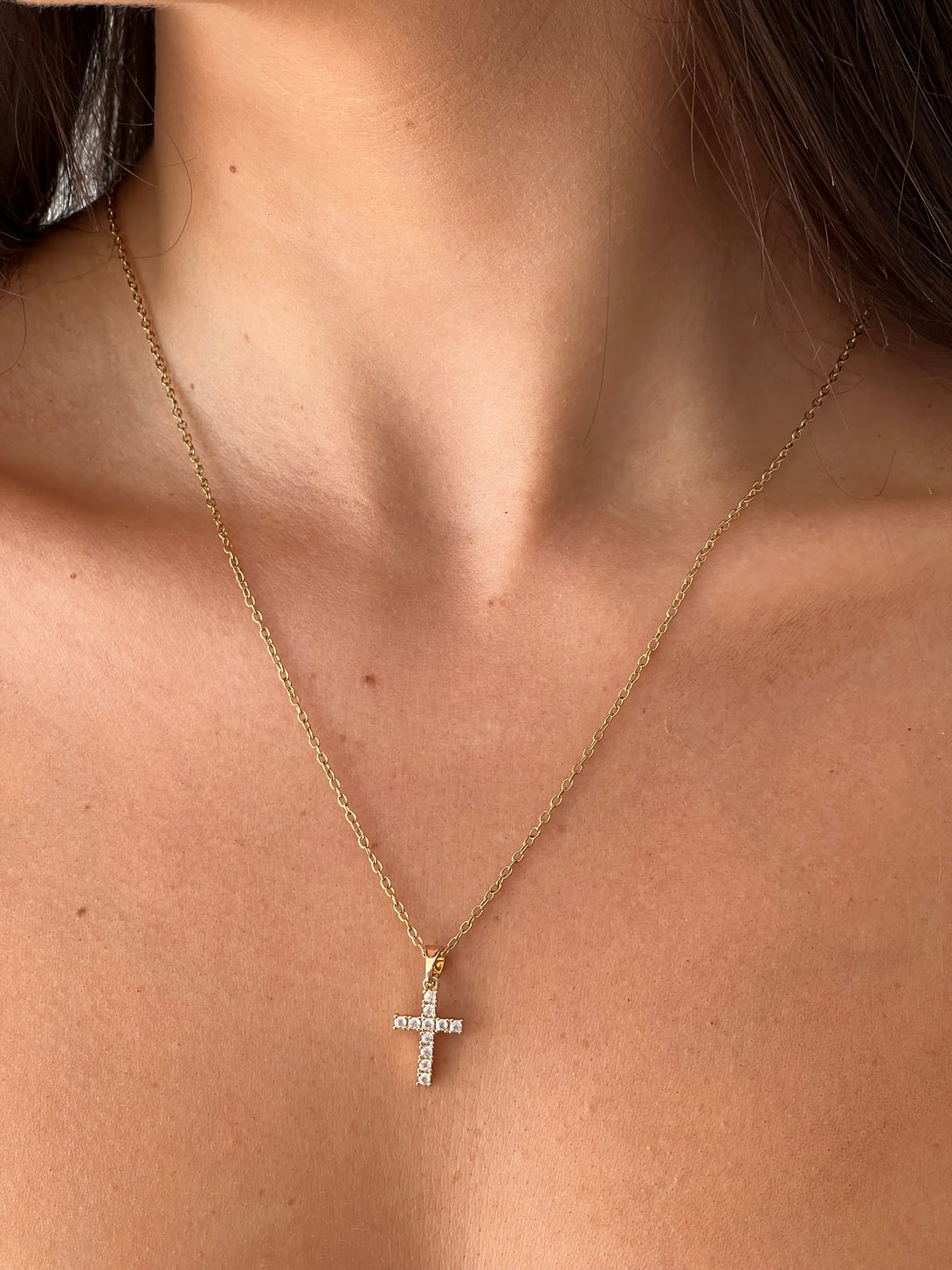 Lantisorul Golden Cross imbina simplitatea eleganta cu simbolismul delicat, fiind accesoriul perfect pentru tinute de zi sau aparitii rafinate. Realizat din otel inoxidabil auriu, rezistent la apa si hipoalergenic, acest colier are un pandantiv in forma de cruce decorat cu zirconii fine pentru un plus de stralucire. Designul minimalist il face usor de purtat atat individual, cat si in combinatie cu alte lantisoare.